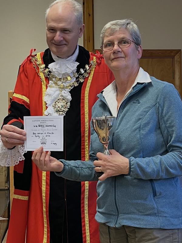 The Royal Horticultural Society provides each of the Affiliated Societies a “Certificate of Recognition” which can be presented to someone who has gone the extra mile in the last year. The Eastcote Horticultural Society includes this presentation in our Annual Awards at the Spring Show.