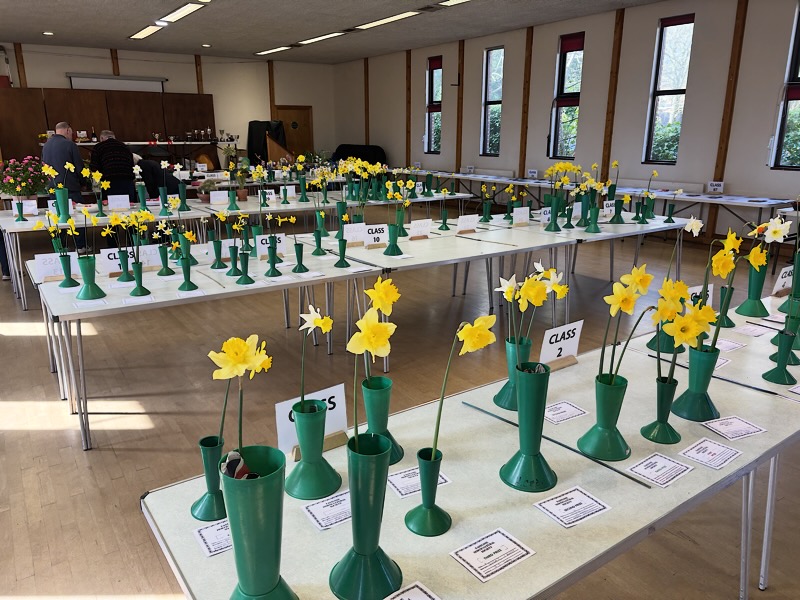The number of entries for this first show of the year was tremendous. Being the Spring Show the focus is on the daffodils. We haven't seen such a display of daffodils on the show benches for many years. As most of us who bring our daffodils along to exhibit are not experts, the Show Committee ask the judge for assistance with getting them into the correct class before judging begins. This proves that absolutely anyone can bring a daffodil to the show and we'll find the correct place for it. It really helps if you know the name of the daffodil so when you purchase the bulbs please keep a note of the name and bring this to the show. There are helpful guidance notes and diagrams in the Show Schedule to help with which daffodil class to enter.